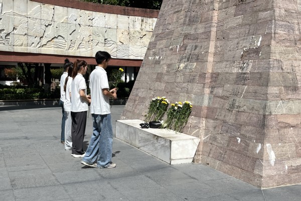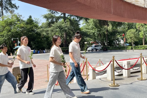 在庄重的氛围中,实践队成员依次站在纪念碑前敬献鲜花,并深深鞠躬,以此表达对革命先烈的崇高敬意和深切缅怀。这一简单而深刻的仪式,让实践队的每一个人都深刻感受到了革命先烈们为了民族独立和人民幸福所付出的巨大牺牲和不懈努力。