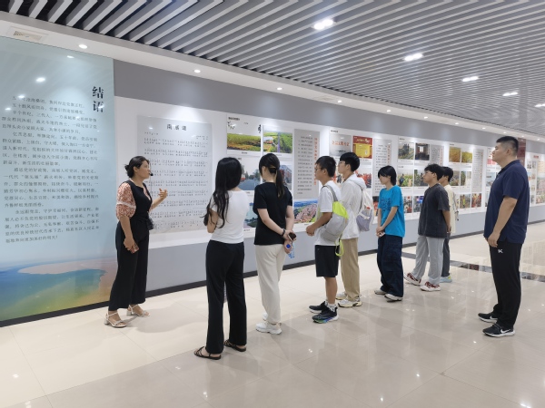 在讲解员的带领下,队员们参观了杨庙社区便民服务站,站内多功能扩展柜、自助服务终端等智慧设备为便民服务提质增效。在展馆内,队员们了解了杨庙社区充满艰辛的发展历程。过去的南展区,群众必须在防洪时期搬到大堤房台上生活,房屋紧缩;随着人口增加,老房台区逐渐无法适应群众的生活需要。十八大以来,东营市决定实施黄河南展区村庄搬迁改造工程,规划建设董集镇杨庙社区,自此,黄河南展区实现了从传统落后农村到生态宜居新社区的转变。如今的杨庙社区实行集中供暖、天然气入户、污水集中处理,并配套建有各种公共服务设施,村民们的幸福之情溢于言表。从当年受制于天灾的黄河南展区,到如今的欣欣向荣的全国模范村镇,再到未来全面发展的新型乡村社区,杨庙社区居民的生活蒸蒸日上。