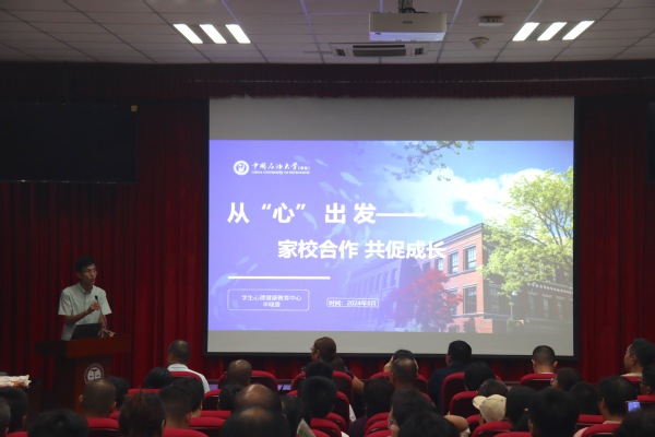 随后,赵延升向在座家长介绍辅导员职责和办公相关事项。他就大学阶段的学习目的及方法进行了生动详细的介绍,引发新生家长共鸣。为方便学生家长更好地了解大学生活,他从心理健康、宿舍问题、学生管理秩序和思想成长四个角度进行讲解,鼓励家长引导学生树立正确的世界观、人生观和价值观,以积极的心态迎接即将开启的大学生活。