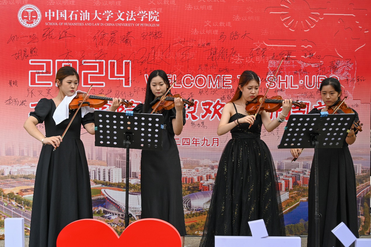 学院音乐学专业的学子们,在学院的迎新现场,纷纷拿起乐器,倾情演绎。从激昂高亢的旋律到深沉低回的曲调,从热烈如火的激情到温柔似水的旋律,一首首乐曲交织成美妙的乐章,为新生及家长们呈上了一场难忘的音乐盛宴。