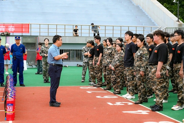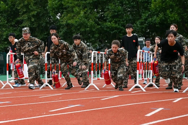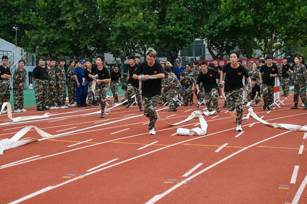 下午,学生们参与了紧张激烈的消防运动会,在活动中提高防火意识、增强自救能力。随后,在教官的组织带领下学生们进行齐步行进与立定、正步动作等训练。他们不约而同地以最高的标准要求自己,将教官教授的口令熟记于心,力图将每个动作都做到规范整齐,展现出文法学子精益求精的精神和坚韧不拔的意志。