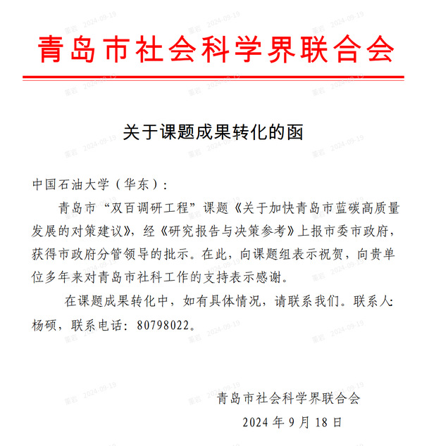 该成果是我校主动融入青岛建设引领型现代海洋城市发展战略、科教融汇服务地方的又一高水平智库成果,也是我院环境能源法律与政策研究中心始终坚持服务行业、服务地方、坚持优质建言献策特色发展的重要体现。