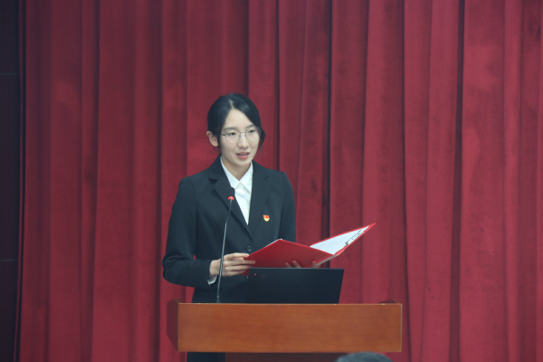 其中,法学2201班杨富媛的演讲深入剖析了宪法对中国特色社会主义“四个自信”的法治支撑,阐释了宪法在确立道路、理论、制度和文化自信中的核心作用,强调了宪法作为国家根本大法,是增强国民自信、推动社会进步的法治基石,多维度阐述了“以宪法回答‘何以自信’”的议题。法学2203班田一何则以自己参军入伍、用行动践行宪法的经历现身说法,让观众感受到宪法于守卫国防安全与牢铸个人使命感的重要意义。他们精彩的演讲表现感染了在座的每一位观众,赢得了阵阵掌声,获得了评委们的一致好评。