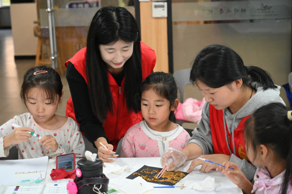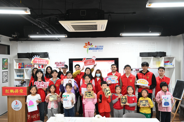 支部成员与社区小朋友一起制作金箔画 杨富媛摄