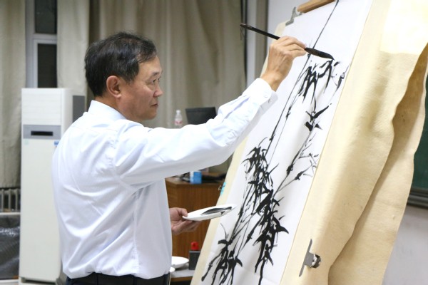作为有丰富大写意画创作经验的画家,刘彬礼通过个人作品展示,以更加生动鲜活的实例向在座师生其创作的经过和气韵、个性和笔墨三个特征的呈现。并现场泼墨画竹,动态直观地展示大写意画笔法力度与节奏的变化,行笔的快慢顿挫、墨色的浓淡干湿、画面的留白与虚实,以自由而潇洒的笔触,表现画家的心境和意图。