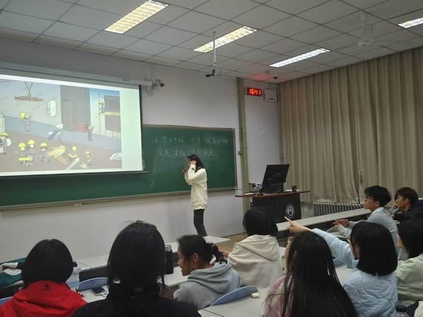 为了提高同学的消防安全意识,使其具备基本的消防安全知识,11月22日下午,法学2402团支部在南堂101举办了主题为“蓝焰之光,守护同行,全民消防,生命至上”的团日活动。