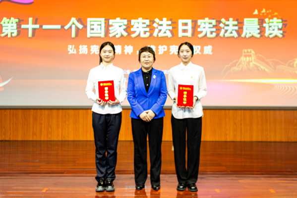副校长张玲玲在讲话中回顾新中国成立以来宪法的颁布及修订历程,阐述宪法修正案对高校教育的深远影响,指出在新时代背景下,高校要不断适应和落实宪法的新要求。她指出,今年是新中国第一部宪法颁布70年,70年来,在党中央领导下,以宪法为核心的中国特色社会主义法律体系更加成熟完备,宪法使得广大人民群众有法可依、有法必依、有法可循。“未来的中国属于青年,法治中国的建设依靠青年。希望你们明法于心,守法于行,扎根人民,奉献国家,以青年之力,铸就法治辉煌。”她殷切寄语广大青年师生。