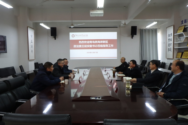 12月11日,青岛西海岸新区工委政法委副书记王延安来我院调研座谈,青岛西海岸新区法学会专职副会长刘德喜、青岛西海岸新区政法委二级调研员阳昆随同进行调研。学院领导班子成员及法学系相关负责人参加座谈会。