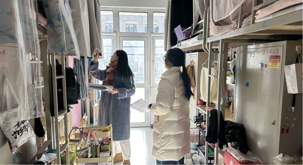 各年级辅导员在学生公寓19、18、17、15、8号楼及研究生公寓3号楼仔细检查了学生宿舍水路、电路安全及门窗锁闭情况,对存在的隐患问题及时进行了整改,并对学生进行了安全教育。