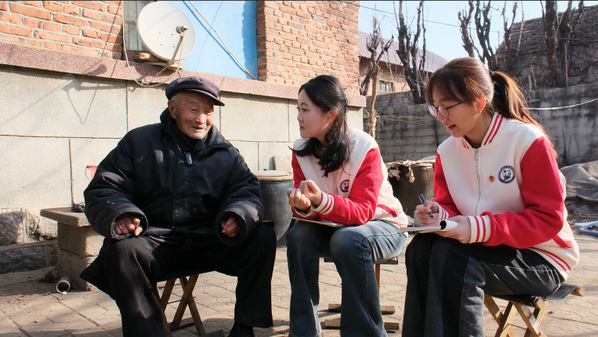 1月12日,实践队马不停蹄来到板泉镇渊子崖村。他被誉为“中华抗日第一村”。在瞻仰了渊子崖烈士纪念碑和渊子崖保卫战遗址后,实践队有幸采访到了老党员林孝祥老人。