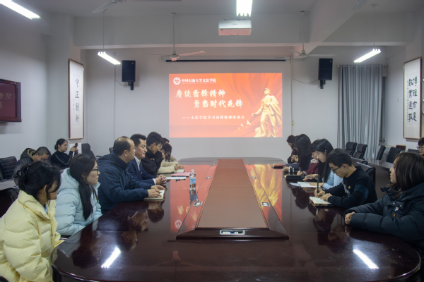 为深入挖掘雷锋精神时代内涵,传承红色基因,在学雷锋纪念日来临之际,永利yl23411集团于3月4日举行“赓续雷锋精神,勇当时代先锋”雷锋纪念日主题教育活动。雷锋班第21任班长李桂臣受邀走进校园,通过座谈交流与专题讲座,为文法学子带来了一堂沉浸式思政课。党委副书记陈熙,团委书记赵延升,辅导员杨倩等一同参与。