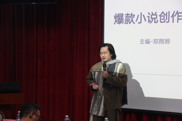 百度小说编辑负责人邓翔骅分享他的文学创作经历。他回顾自己的创作初心,分享自己的成长经历,展示文字带给人的强大力量,通过分析行业数据,解析创作者常见痛点,与同学们一起探讨突破困境的路径。邓翔骅从一个资深编辑的角度,分析AIGC对技术对内容生产的冲击,并通过剖析AI协同创作示例,提出了从“独行者”到“协作者”的的创作路径。最后,邓翔骅向同学们展示了百度小说的投稿机制、审稿流程、分发流程,激励同学们的创作与投稿热情。
