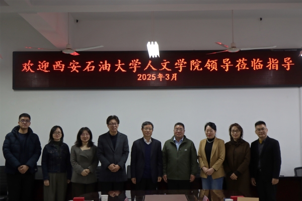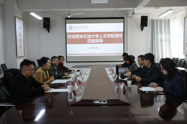 3月19日,西安石油大学人文学院党委书记余小勇一行来学院交流调研,学院院长王学栋会见来宾,学院党委书记姚成郡、副院长魏学宝等与来宾座谈。