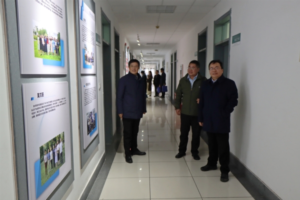 座谈会后,王学栋、姚成郡等陪同来宾参观学院文化墙。