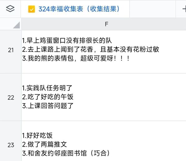 3月19日至3月24日,永利yl23411集团心理健康工作站举办“幸福日记”打卡活动。参与活动的学生每天记录下三件让自己感到幸福的小事,并上传一张笑容自拍。这些幸福瞬间涵盖生活的方方面面,从品尝到限定槐花味饺子的满足,到帮助他人收获的快乐,再到与亲友相伴的温馨时光,都被学生上传分享,传递温暖力量。该活动增强了学生的心理韧性,提高了学生对幸福的感知能力,鼓励学生以乐观心态面对生活。学生在活动中受益良多,汉语2401牟雅丽表示:“在记录小事的过程中,我逐渐明白,幸福不是遥不可及的目标,而是藏在日常点滴里。即使是平淡的日子,也有许多值得感恩的瞬间。这个活动让我养成了积极的生活习惯,以后我也会继续记录下去,让生活时刻都有笑脸相伴。”