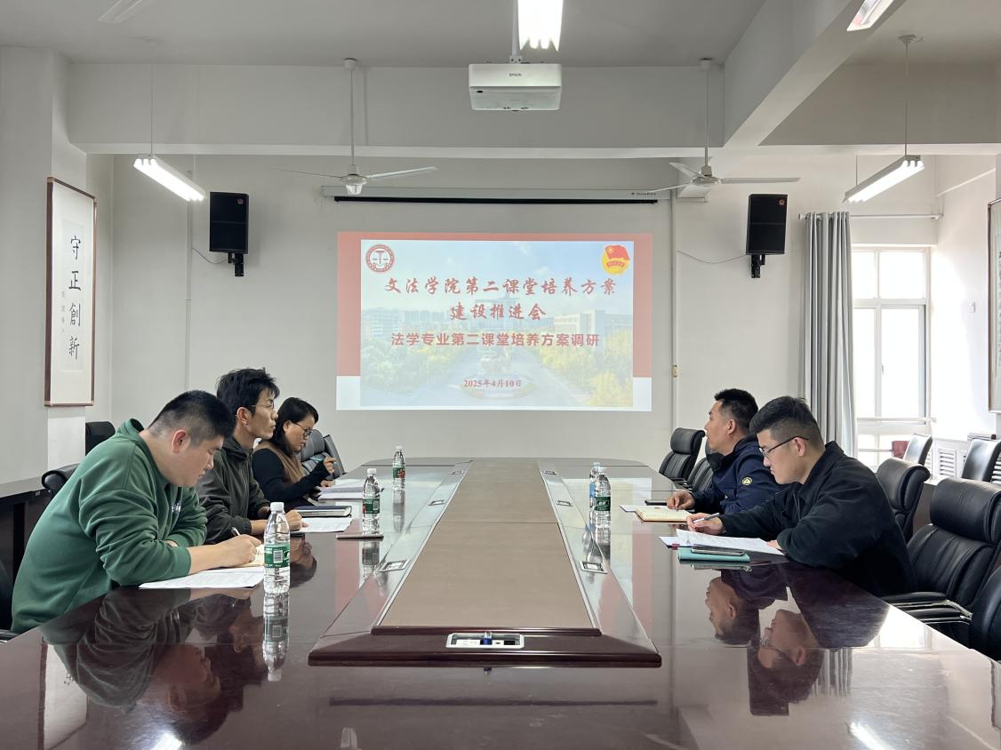 4月10日,校团委青年成长研究中心调研我院法学专业第二课堂建设情况。校团委青年成长研究中心主任、储建学院辅导员李峰弼,中心干事、理学院辅导员崔皓,法学系副主任谌爱华,学院团委书记赵延升和辅导员刘正宇出席会议。