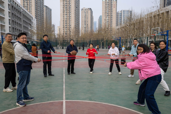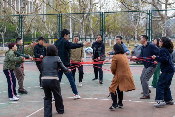 本次趣味运动会由学院工会精心策划、组织,党委书记姚成郡致开幕辞。活动打破传统运动会的模式,以趣味性和团队协作为主导,共设置“众星捧月”“一击必中”“一圈到底”三项趣味比赛,各工会小组以团队形式参赛。现场人心振奋,活动开展如火如荼。