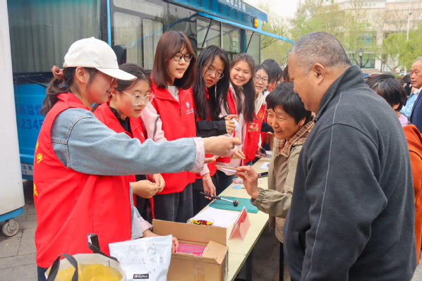 志愿者分发礼品 侯博文摄