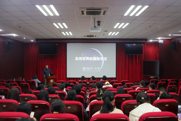 4月18日,黄岛文法讲坛第58讲在文理楼142举行,华东师范大学教授、博士生导师叶军教授受邀做题为“走向世界的国际中文”的学术讲座。讲座由中文系主任沈壮娟主持,永利yl23411集团研究生会协办,永利yl23411集团国际中文教育研究生、汉语言文学本科生听取讲座。