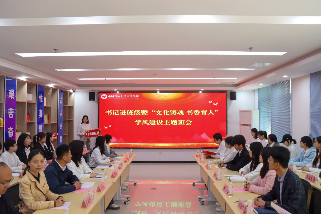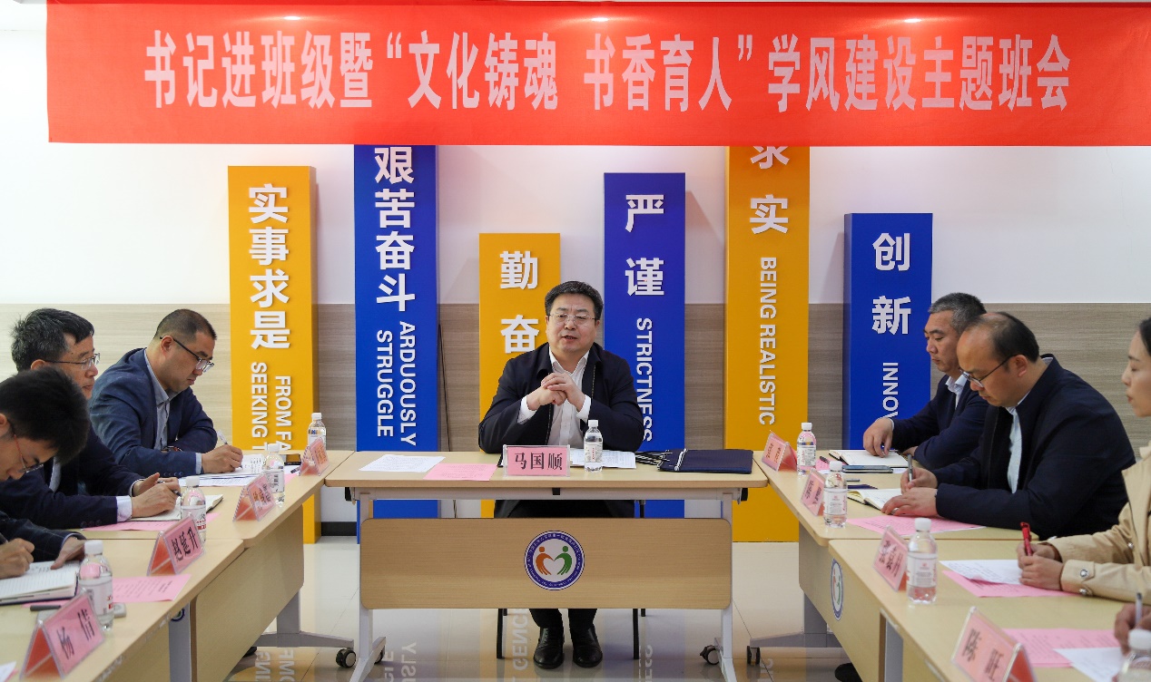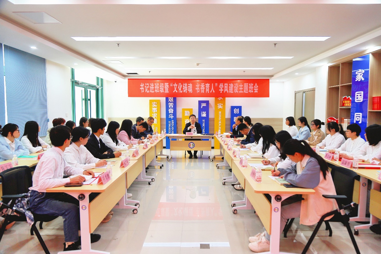 为深入学习贯彻全国两会精神,担当新时代文化使命,促进优良学风建设,4月24日,校党委副书记马国顺走进永利yl23411集团汉语2201班,指导班级开展“文化铸魂·书香育人”学风建设示范性主题班会,并为学生讲授《文化铸魂 书香育人》微党课。活动在“一站式”学生社区报告厅举行,由汉语2201班团支部书记刘佳怡主持,党委学生工作部(武装部)部长张程,校团委书记季林海,永利yl23411集团党委书记姚成郡、学工队伍及汉语2201班班主任张袁月一同参加活动。
