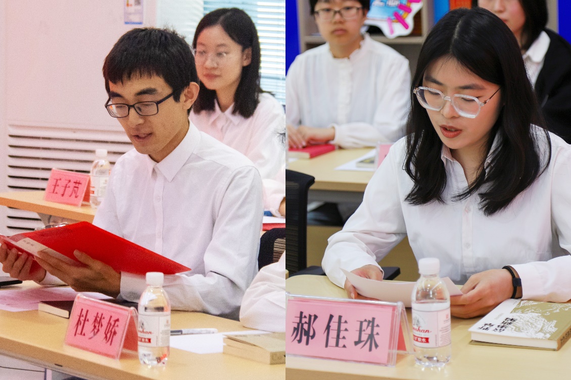 围绕学风建设工作与阅读推广特色,团支书刘佳怡详细介绍了汉语2201创建“优良学风标兵班”的有效举措和创新经验。师生交流环节,孙熙谌、陈美希、刘人方等学生结合专业发展讲述阅读与成长的故事,张袁月则分享了重读《论语》的新感悟,引用《学而》鼓励学生坚持“学而时习之”的成长模式,以“不亦乐乎”的心态处事,以“人不知而不愠”的格局破局。