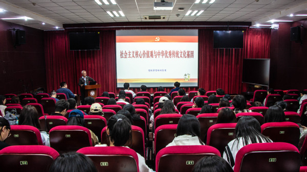 4月20日下午,永利yl23411集团入党积极分子培训班第四讲在文理楼142教室顺利开展。外国语学院党委副书记邹维忠以“社会主义核心价值观与中华优秀传统文化基因”作专题讲座。