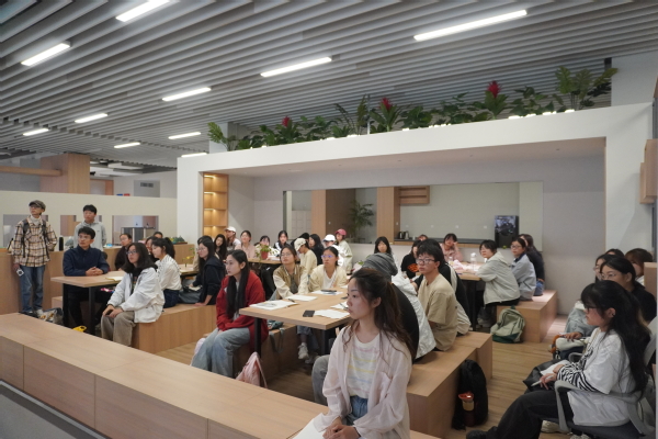 活动现场互动热烈,汉语2401张晓琳分享感悟:“跨界不是否定过去,而是让专业背景成为独特的赋能优势,如同宝石在压力中沉淀光芒。”