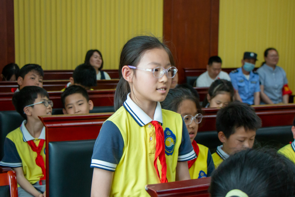 本次活动紧扣“大中小一体化”理念,创新构建了法校家社协同育人机制。大学生将“自首的认定”“未成年人犯罪处罚”等专业知识转化为模拟法庭剧本,带领小学生们体验法律案件审理全流程;薛家岛(少年)法庭开放真实审判场所,法官现场指导庭审程序规范并进行法律知识答疑;49名小学生沉浸式体验庭审流程,参与案件讨论,内化法治素养;家长代表同步进行案件学习,强化家长监督意识,营造良好社区法治氛围。这种法校家社协同育人机制,是打破学段壁垒、贯通教育场景的创新实践,助力青少年法治教育。