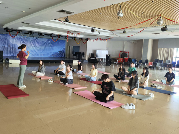 活动伊始,辅导员于露老师为本次瑜伽交流活动致辞。于露老师指出,在紧张的学术科研中,我们不仅要关注知识的积累,更要重视心理的“亚健康”状态。瑜伽就像一场心灵的“及时雨”,帮助大家在一呼一吸间卸下焦虑,在一招一式中重新认识自己,让身体的放松成为心理调节的起点。