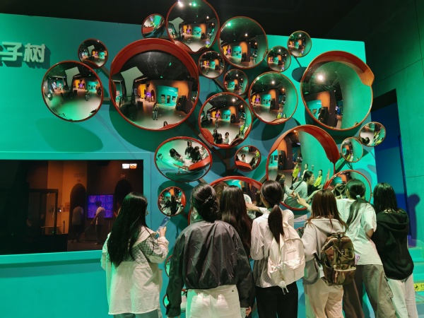 活动当天,支部成员们在科技馆门口集合签到后,依次参观了三个主题展厅,每个展厅都展现出不同领域的科技魅力。在探索发现展厅,支部成员们通过体验各种互动实验装置,如杠杆、滑轮电动机模型、声光互动装置等,探索“力与机械”“声与光”“电与磁”的物理知识世界。蓝色星球展厅以海洋探秘、生命人体和浩瀚宇宙三个展区为主线,结合互动游戏和虚拟现实技术的形式,带领支部成员们展开了一场宏大的探索之旅。创新解码主题展厅则展示了前沿科技的辉煌成果。人工智能、生物科技、新能源技术等领域的创新应用,诠释了科技与生活之间的联系。展览多以探究式学习的方法,分析解读科学原理,通过身临其境的互动体验,让支部成员们切身体会科学的魅力。这些前沿科技拓展了支部成员的科技视野,也激发了他们投身科技创新的热情。