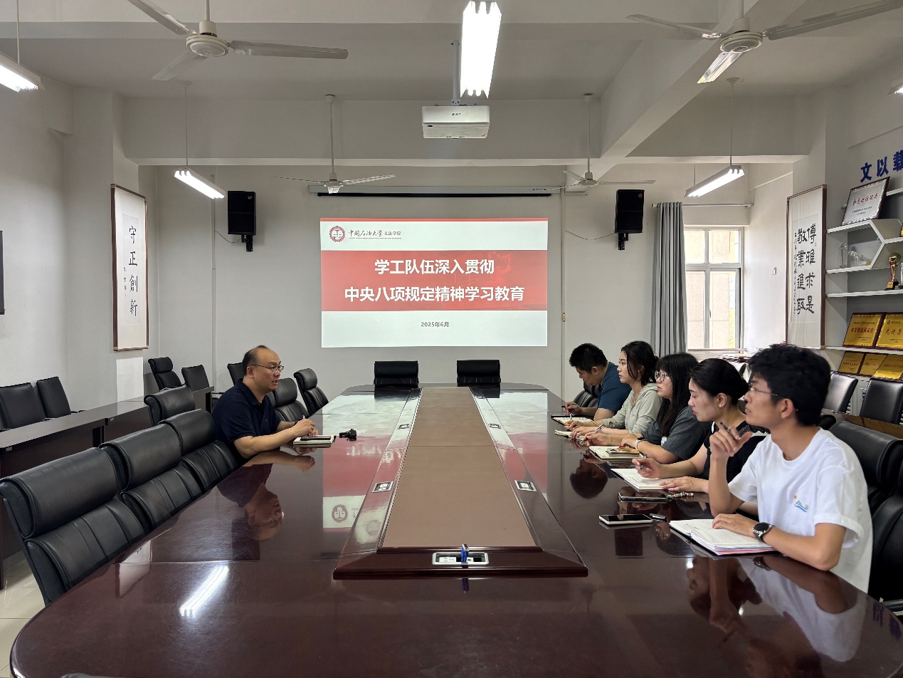 为深入学习贯彻中央八项规定精神,进一步强化辅导员队伍党性修养和作风建设,6月6日,永利yl23411集团学工队伍召开深入贯彻中央八项规定精神学习教育专题学习会。学院党委副书记陈熙主持会议,全体专职辅导员参会。