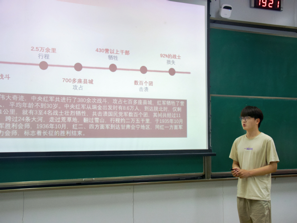 首期经验分享会上,曾带领团队立项2024团中央“七彩假期”全国优秀团队、获得省级社会实践先进个人的法学22级沈舒,把在五头村支教的点点滴滴,化作生动鲜活的案例,从教学管理把控到课程设计的构思,全方位呈现在新队员面前。随后,爱随心支教团团长周佳豪结合自己两次深入支教的宝贵经验,进行分享,从班级管理、心理健康教育、团队建设三个方面进行了分享。他还向新一届支教队员们传授了如何同学生相处、丰富支教生活、参与当地志愿服务等相关经验。