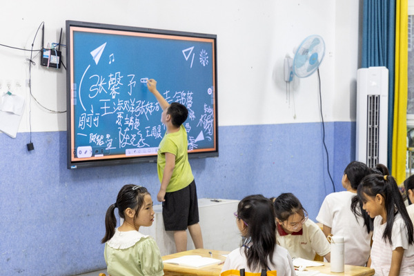 进入教室后支教课程正式开始,首先进行师生相互自我介绍并开始“安全第一课”主题教育活动,强调支教活动中的纪律要求和安全底线。随后,队员们以生动有趣的破冰小游戏拉进师生间具体和学生们距离。在“逛三园”、“萝卜蹲”、“介绍我的好朋友”等活动中让班级氛围迅速活跃起来,用有趣的游戏帮助大家了解各自的性格和爱好,为后期的支教教育互动顺利进行打下基础。下午,支教进入正式的教学环节,文化课上,同学们从古诗到小数,从小数到字母,帮助学生们培养学习兴趣,建立学习逻辑。兴趣课上,从艺术到法律,从法律到国防,助力学生们开拓视野,德智体美劳全面发展。在一片欢声笑语中,课程内容如期展开。
