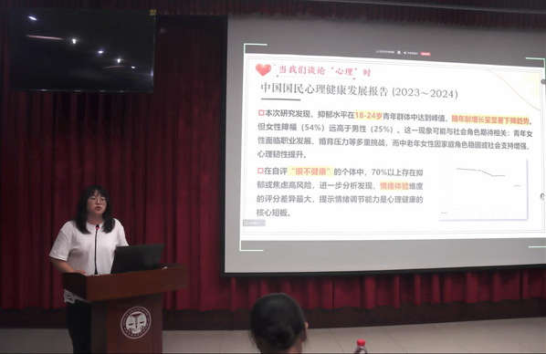 在研究生生活中,学业与科研压力不可避免。学院心理工作负责人杨倩以“生命”小游戏作为导入,带领同学们在互动中思考自我与未来。她结合自身经验,详细介绍了学院心理健康教育体系及支持渠道,鼓励同学们在遇到困难时积极寻求帮助。她指出,心理健康是学业成功的重要保障,希望大家在追求学术突破的同时,也要学会调适心态,保持身心平衡。她温暖而专业的分享,让在场新生倍感安心和鼓舞。