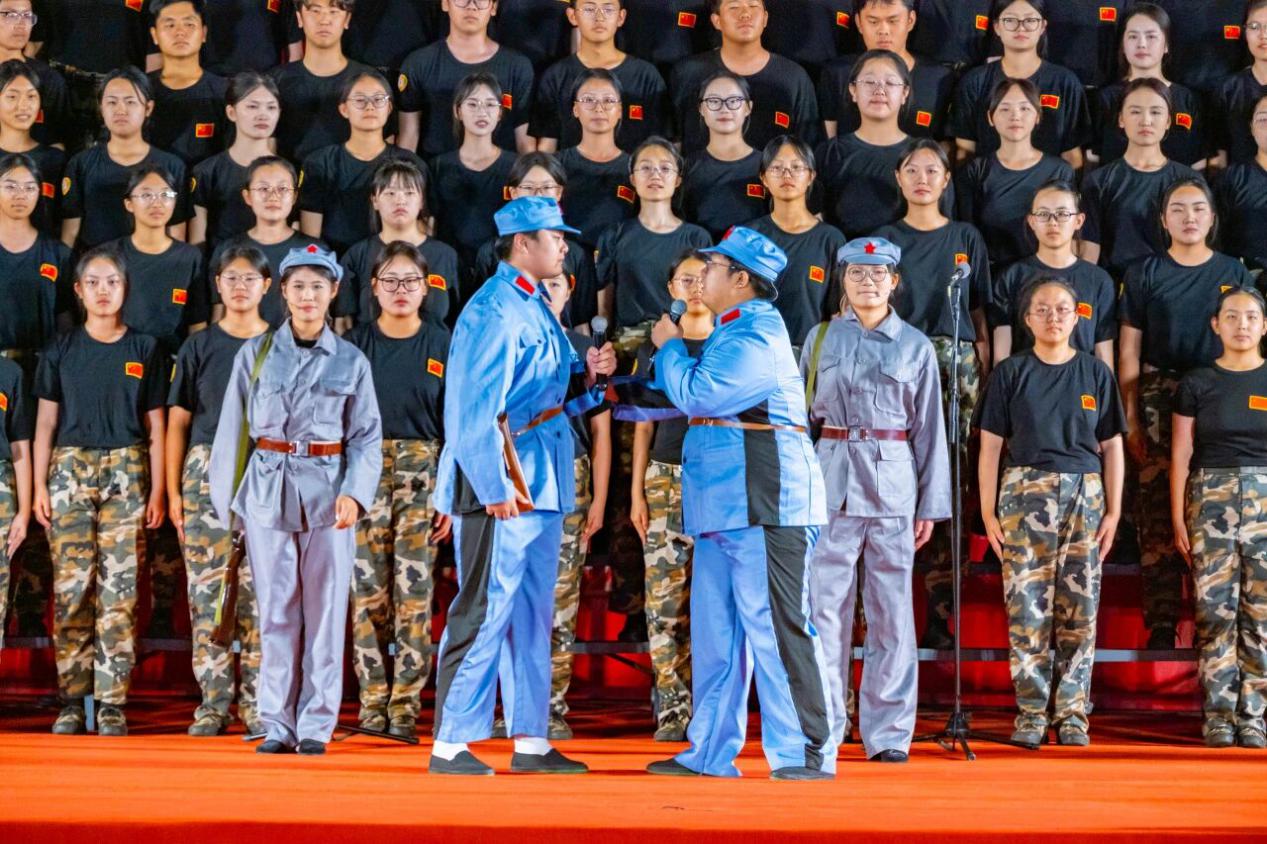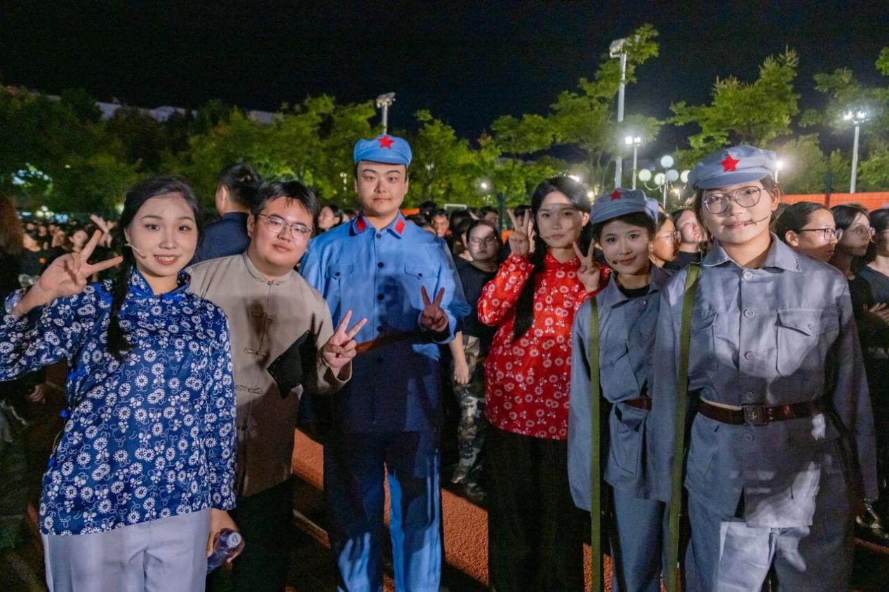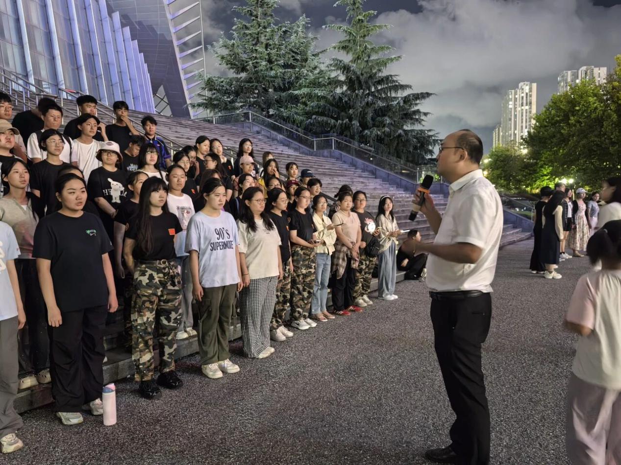 每一份荣耀背后,都是汗水与努力的积淀,更凝聚着文法大家庭的优良传统。训练期间,新生们克服军训的疲惫,利用宝贵的休息时间投入排练。没有人抱怨,没有人退缩,每个人都以最饱满的热情参与其中。同时,学院党委副书记陈熙多次亲临指导,辅导员赵延升、王浩然,兼职辅导员贺小凡、刘佳怡陪同训练,给予新生们温暖的关怀与鼓励。音乐系2023级和2024级学生张滢荟、王逸凡、王俞文、邢书磊、张路祺等人则全程提供专业指导,将声乐技巧与舞台经验倾囊相授,为演出质量提供了有力的保障。