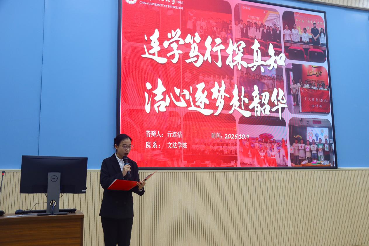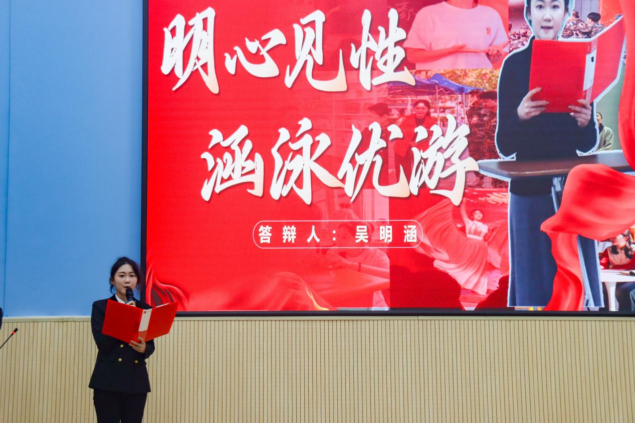 10名候选人依次登台,围绕学业成绩、科研创新、社会实践、综合素质等维度,全面展现个人成长轨迹:既有专业成绩名列前茅、多门课程突破90分的学业硬实力,也有参与大学生创新训练项目、斩获学科竞赛奖项的探索;既包含投身基层支教、社区服务的实践担当,也涵盖文体活动引领、学生工作服务的综合能力。每位答辩者均以详实案例和数据,呈现出在思想成长、专业学习与社会服务中的丰硕成果,自信从容的表现赢得台下阵阵掌声。