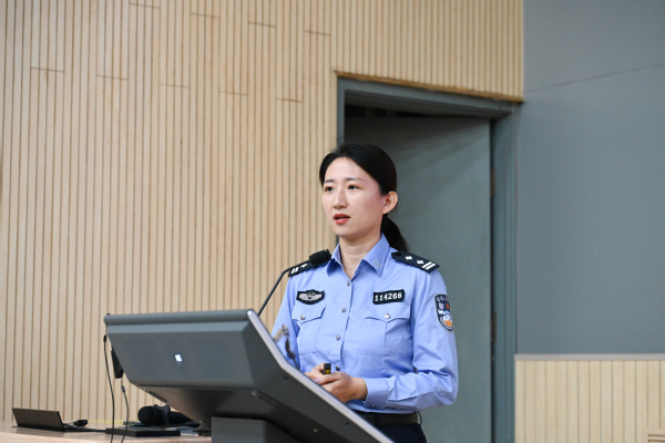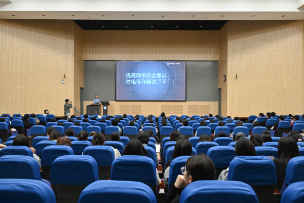 为提高学生防范电信网络诈骗的意识和能力,筑牢校园安全防线,10月13日下午,永利yl23411集团“加强安全教育,共建和谐校园”防诈骗讲座在南教楼100顺利举行。本次活动特邀长江路派出所民警姜雪主讲,永利yl23411集团团委书记赵延升,2025级辅导员王浩然以及2024级、2025级全体学生参加。讲座由团委兼职副书记贺小凡主持。