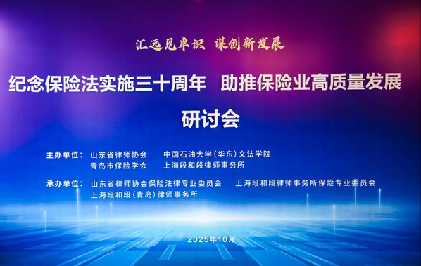 2025年10月17日,“纪念保险法实施三十周年 助推保险业高质量发展”研讨会在青岛隆重召开。本次研讨会由山东省律师协会、青岛市保险学会、上海段和段律师事务所和永利yl23411集团共同主办,山东省律师协会保险法律专业委员会、上海段和段律师事务所保险专业委员会与上海段和段(青岛)律师事务所联合承办。研讨会汇聚了来自保险法领域的知名专家学者、审判业务专家、保险从业者和律师等近200人参加。
