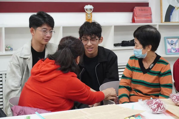 随后,现场开展了扭扭棒茱萸花制作与香囊DIY活动。支部成员们与老人围坐成组,耐心讲解茱萸“避灾祈福”与香囊“辟邪驱瘟”的传统寓意,并手把手演示制作步骤。学生们在协助老人完成手工作品的过程中,传递出浓浓的陪伴之情。部分学生还将自己制作的手工作为礼物赠予老人,现场气氛温馨,笑语不断,老人们的脸上洋溢着节日的喜悦。