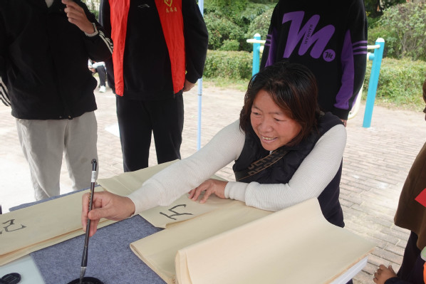 老人尝试书法 刘令仪摄