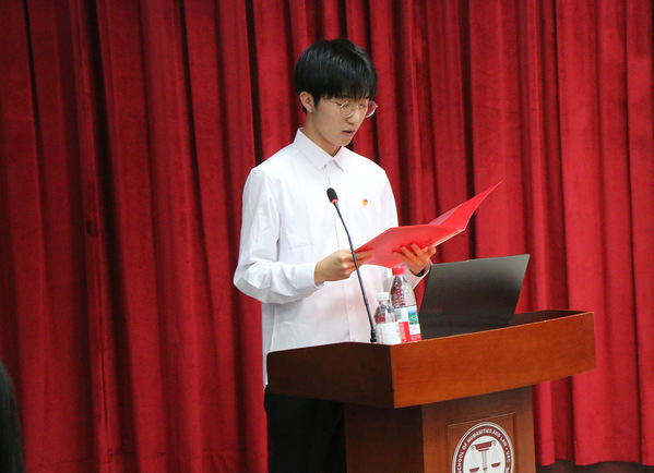 紧接着,团员代表董瑞发言,他结合自身团学经历,分享了对“青年马克思主义者培养工程”的理解与期待,表示将珍惜此次学习机会,积极汲取知识养分,并号召各位学员在思想淬炼和实践锻炼中锤炼本领、担当作为,以实际行动展现青年团员的先锋模范作用。仪式最后,全体人员合唱中国共青团团歌,激昂的歌声传递着团员青年的青春热血与使命担当。