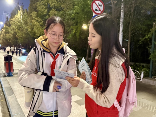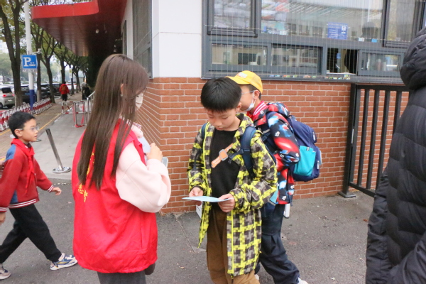 宣讲团还组织成员前往青岛西海岸新区实验初级中学、珠江路小学门口,开展“反校园欺凌”传单发放活动。传单内容聚焦于校园欺凌的表现形式、现实危害、预防措施及法律责任等关键信息,设计简洁明了、重点突出。成员们结合传单内容,耐心地向过往的学生们讲解反校园欺凌的要点,解答大家的疑问,呼吁家长重视孩子心理健康教育,营造“家校联动、共同守护”的良好氛围。