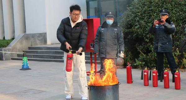 活动伊始,保卫处孟老师以理论结合实操的方式展开培训。他系统讲解了火灾的分类标准,详细拆解了灭火器的工作原理与使用要领,重点演示了干粉灭火器“提、拔、握、压”四步操作法。在模拟灭火实操环节,同学们踊跃参与,在老师的现场指导下亲身实践,熟练掌握了灭火器的正确使用方法,将理论知识转化为实战能力。