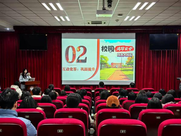 在知识宣讲环节,院研会权益维护部成员侯玉芳通过PPT,系统普及了燃烧三要素、火灾预防办法、应急报警要点、疏散逃生原则等基础消防知识,让同学们全面掌握防火、灭火、自救的核心要点。互动竞答环节中,“消防安全隐患大找茬”游戏趣味性十足,同学们通过辨识实景图片中的安全隐患,进一步提升了日常安全防范的敏锐度。