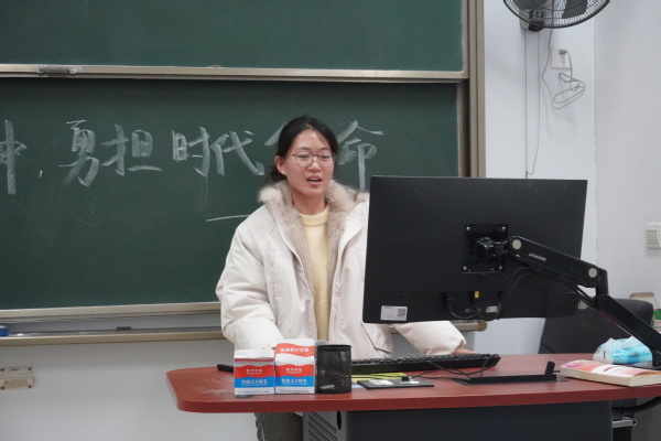 班长乔琪介绍班会主题 刘令仪摄