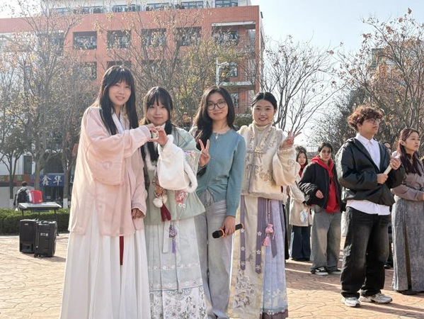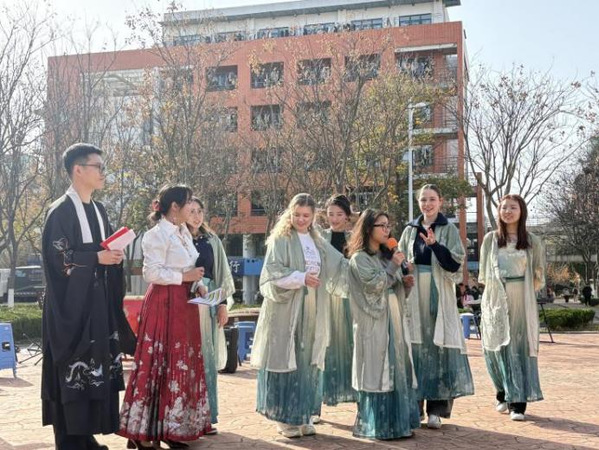 本次游园会以“华灯·彩韵”为主题,设置了舞台表演区与多个传统文化体验摊位。舞台区节目精彩纷呈,涵盖古风歌曲、民乐演奏、传统武术、舞狮表演等;体验区则设有脸谱绘制、活字印刷、书法创作、投壶猜谜、香包制作、植物拓染等十余项互动项目。支部党员全程参与活动的策划、组织与现场讲解,在服务师生、传播文化的过程中锤炼了党性修养与实践能力。活动吸引了包括留学生在内的大量师生参与。留学生在党员志愿者的引导下,亲身体验中华传统技艺,感受中国文化魅力,有效增进了其对中华文化的认知与认同。活动不仅营造了浓厚的校园文化氛围,也展现了党支部在推动文化育人、促进国际交流中的积极作用,是一次党建工作与专业实践有机融合的成功探索。