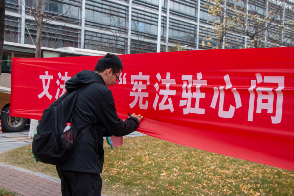 此次活动是我校宪法宣传周的重点环节之一。现场派发的宪法知识宣传手册,涵盖国家宪法日由来、宪法基本原则、公民基本权利等内容,覆盖了宪法的核心框架,让宪法知识从文本转化为可感知的认知,增强对法治社会的认同感与责任感。“我们希望以青年喜闻乐见的方式,让法治意识成为校园文化的一部分。”活动组织者高译文说道。参加活动的2025级学生刘雪仪也表示,“以前觉得宪法离生活很远,今天才知道它不仅规定了国家制度,也和我们的基本权利息息相关。”