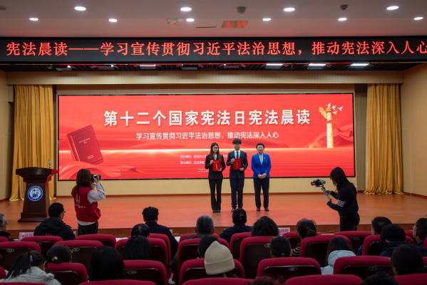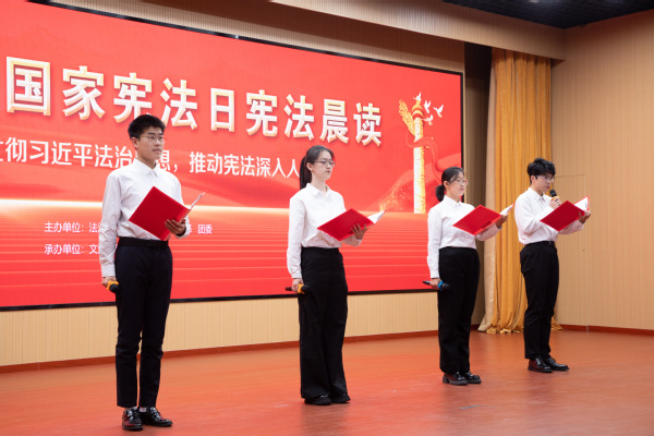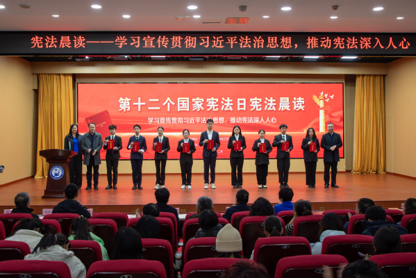为全面贯彻党的二十大和二十届四中全会精神,深入学习宣传贯彻习近平法治思想、习近平文化思想和习近平总书记关于宪法的重要论述,加强宪法法治宣传教育,增强全校师生宪法意识,弘扬宪法精神,维护宪法权威,12月4日,学校开展第十二个国家宪法日“宪法晨读”活动。