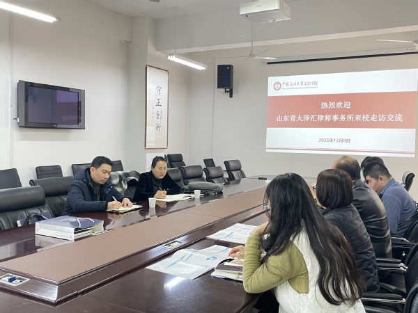 12月8日,山东青大泽汇律师事务所来我院进行走访交流。永利yl23411集团党委副书记陈熙、法学系党支部书记兼副主任谌爱华及各年级辅导员参与活动,双方就学院发展历程、律所建设、学生实习实践基地建设及人才招聘培养等问题进行了交流。