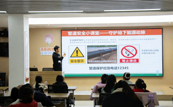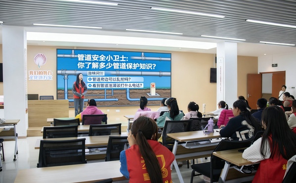 活动首先通过“管道猜猜猜”游戏引入主题,志愿者展示管道模型,抛出问题引导学生主动思考,迅速活跃了现场氛围。随后的主题宣讲环节,志愿者结合动画短片生动讲解管道的能源输送功能、地下铺设分布及安全重要性,通过真实案例,让孩子们直观认识破坏管道的法律后果。